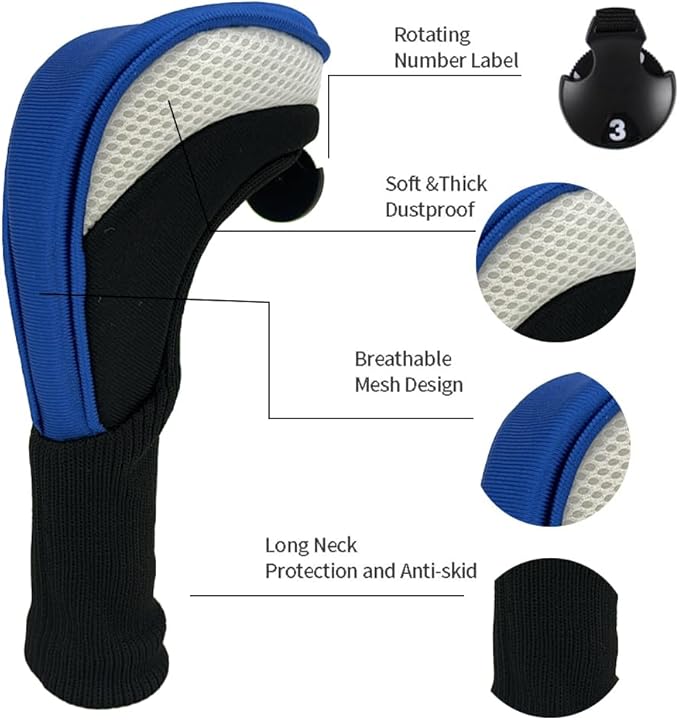 フェアウェイウッズドライバーハイブリッド用ゴルフクラブヘッドカバー 3/4/5ピース ロングネックメッシュスポーツゴルフクラブヘッドカバーセット タグ 3 4 5 6 7 X ゴルフアクセサリー 男女兼用
