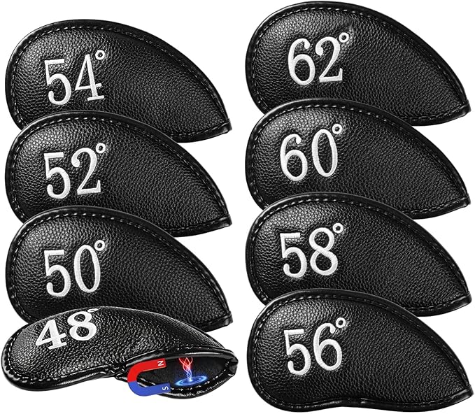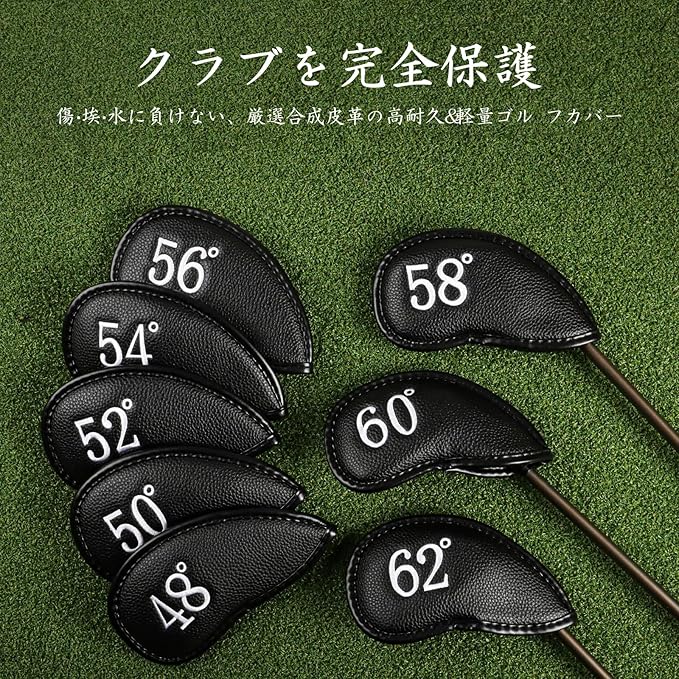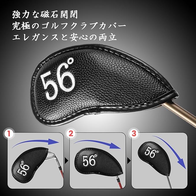ゴルフウェッジカバー アイアンカバー マグネット式開閉 ゴルフヘッドカバー 高級PUレザー 軽量 耐久性・撥水性・防塵性・耐摩耗 両面番号刺繍 単品&セット 48 ~62 究極のヘッド保護カバー GDX-016