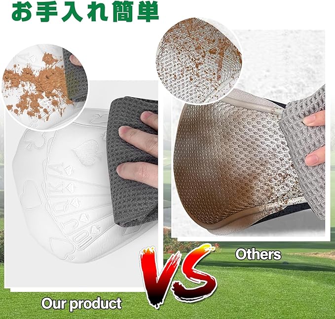 【高品質な素材】:ゴルフヘッドカバーは高品質な素材を採用しております。表地は耐磨耗性の良い合成皮革(PUレザー)で、耐久性が良くて、長持ちです。更に、防水で、うっかりで雨に降られても心配なしで、汚れなどでも気軽に拭き取れます。内側のボアも厚めにし、肉厚のあるしっかりした作りで大切なゴルフクラブをキズから守れます。