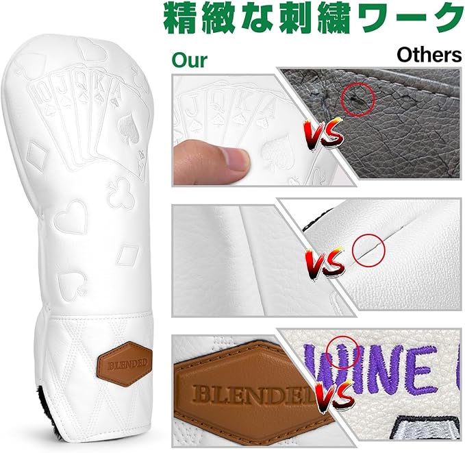 ゴルフクラブヘッドカバー ポーカーデザイン ゴルフヘッドカバー 高級レザー製 ドライバー フェアウェイウッド ユーティリティ ハイブリッド 番号タグ付き