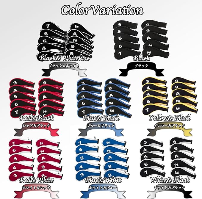 【10個セットでアイアンをフルカバー】このセットには10個のアイアンカバーが含まれており、3番から9番、PW、AW、SWなど、主要なアイアンをすべてカバーできます。統一感のあるデザインで、ゴルフバッグ内が整然とし、見た目も美しくなります。また、セットでの購入によりコストパフォーマンスも高く、初心者から上級者まで幅広くおすすめできます。