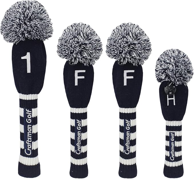 Craftsman(クラフトマン) ゴルフヘッドカバー 4点セット(1FFH) クラブカバー ドライバー用・フェアウェイウッド用・ハイブリッド用 ニット ナンバータグ付け