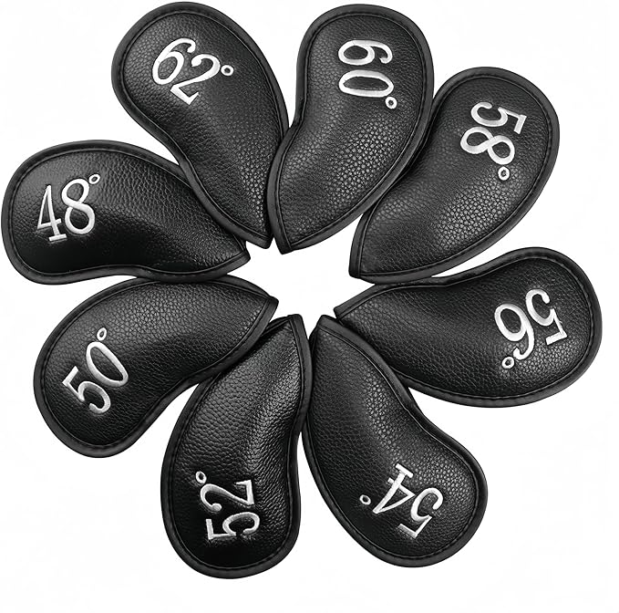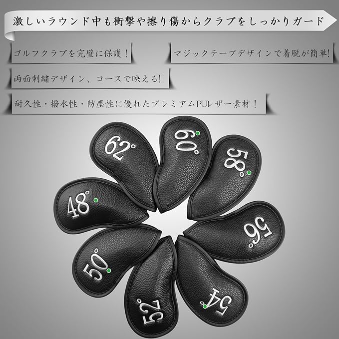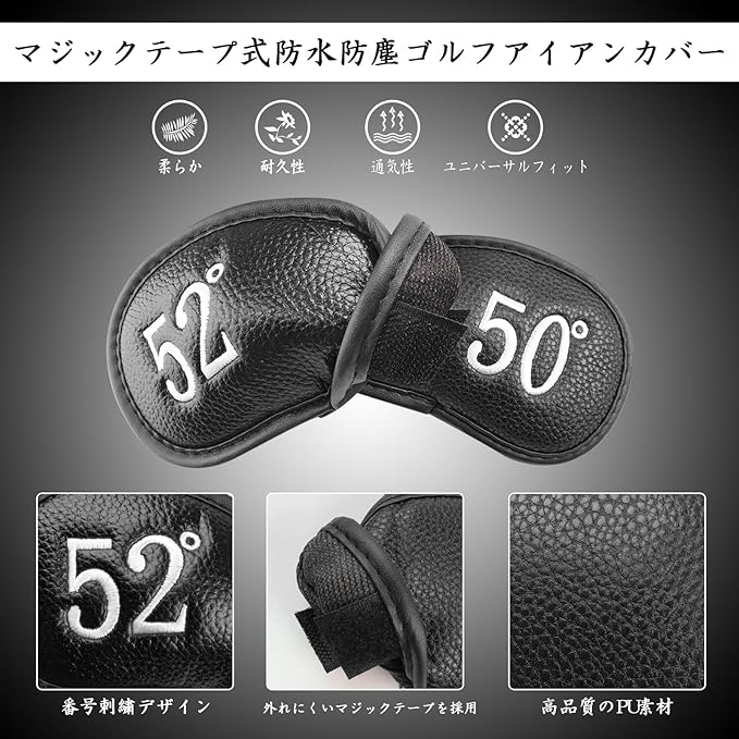 ゴルフアイアンカバー マジックテープ開閉 ゴルフヘッドカバー 高級合成皮革 軽量 耐摩耗 番号刺繍 ウェッジカバー ヘッド保護カバー 48 ~62 GDX-028