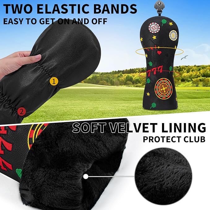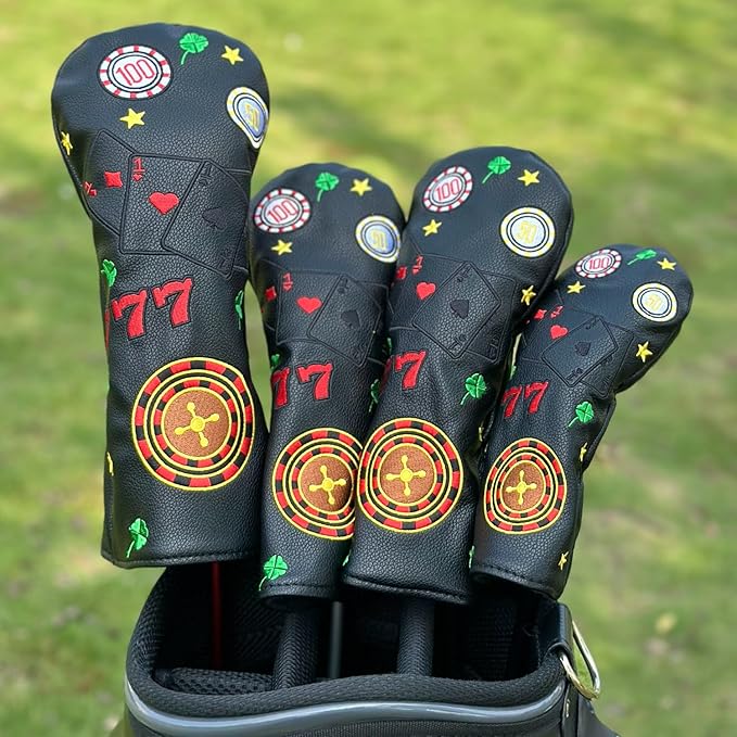 ゴルフヘッドカバー 777 トランプ ゴルフカバー ポリウレタンヘッドカバーセット ドライバーフェアウェイハイブリッドウッズ アイアンウェッジヘッドカバーに適合。