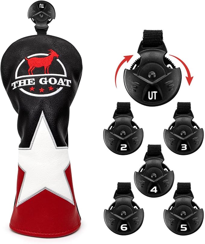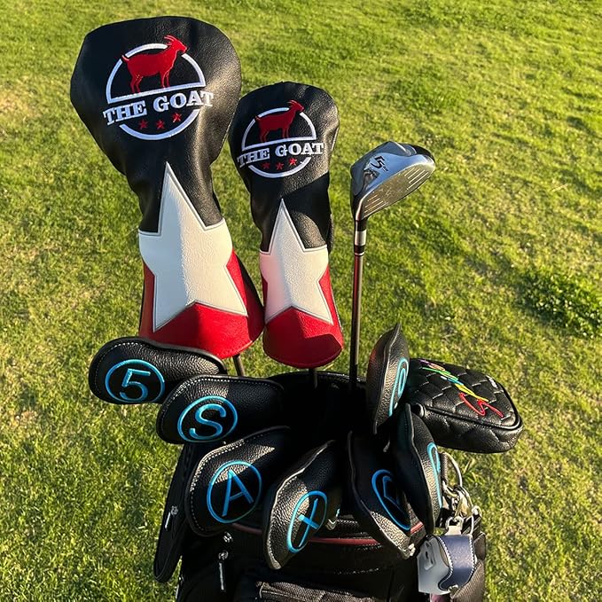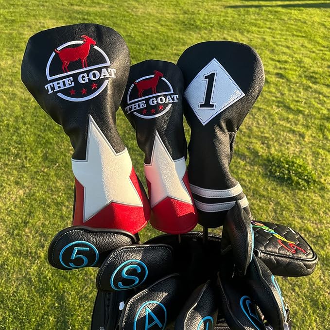 ゴルフヘッドカバードライバーカバー用 人気 The GOAT フェアウェイウッドカバー ユティリティーカバー/ハイブリッドカバー オシャレデザイン 番号タグ付き 高級刺繍 単品 3枚セット