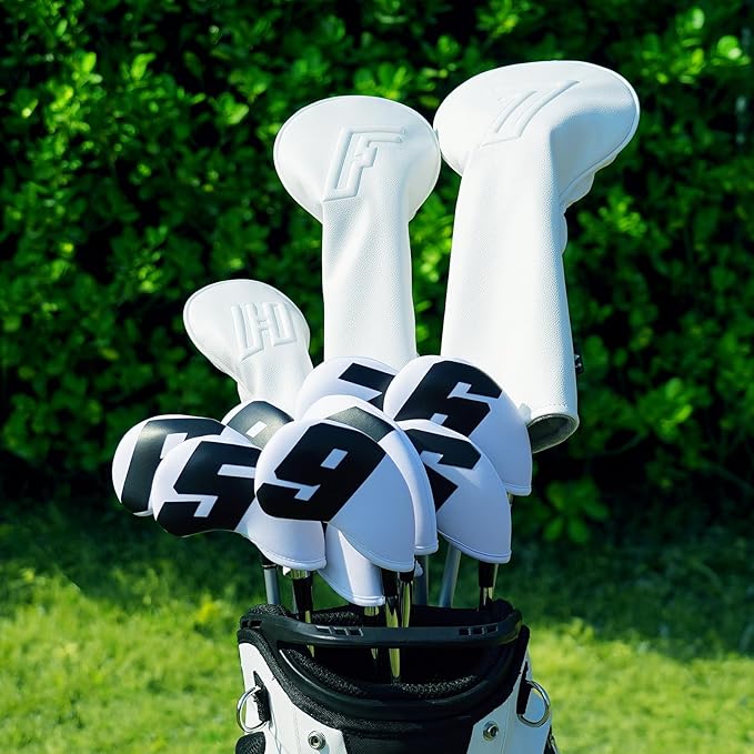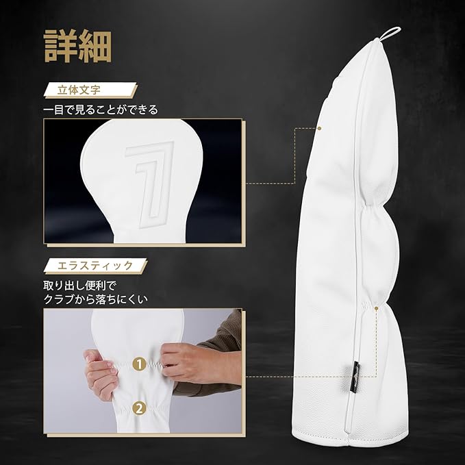 ゴルフクラブヘッドカバー ドライバー用/フェアウェイウッド用/ユーティリティー用 単品/セット シンプルな設計 白い 合成皮革 立体文字