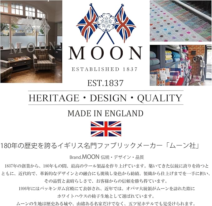 組成:表生地:ウール100% 中生地:ポリエステル100% 刺繍糸:ポリエステル100% 詰め物:ポリウレタン / 仕様:MOON生地・刺繍・織りネーム・中生地起毛