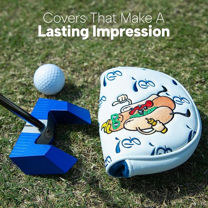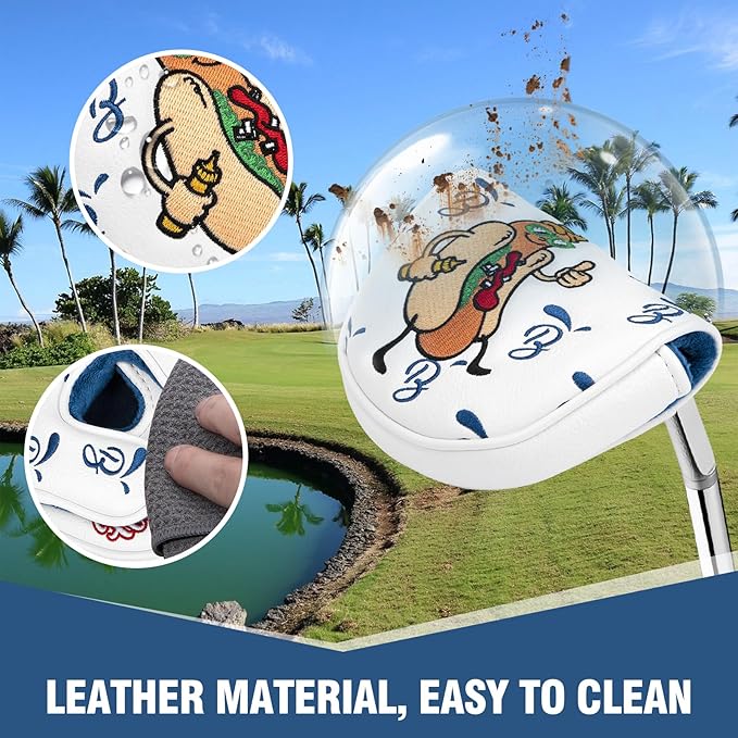 ゴルフパターカバー OZ1 プレミアム刺繍 ホットドッグ マレットパターヘッドカバー レザーゴルフクラブカバー マグネット開閉式 OZ1、MEZZ1、MEZZ1 MAXに適合