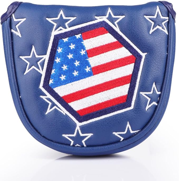 パターカバー ヘッドカバー オデッセイ 2ボールに対応 マレット用 マグネットタイプ スコッティーキャメロン オデッセイに適合 ピンタイプ用 Usa Star 青