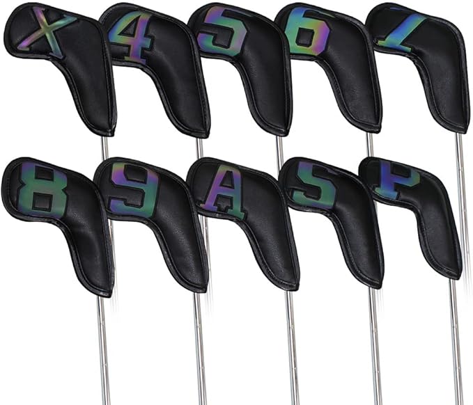 Scott Edward 10PCSウェッジアイアンゴルフヘッドカバーセットPU防水性と耐久性のある強力な磁気、大きな数字でほとんどのブランドクラブに最適