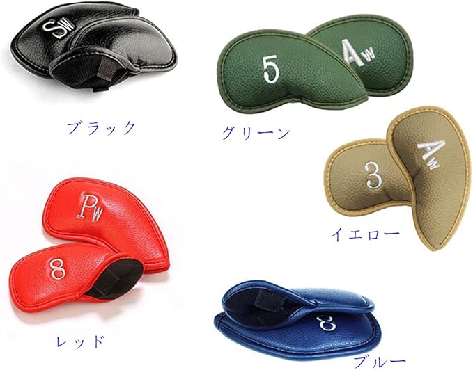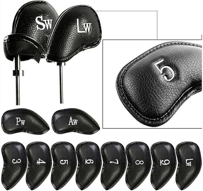 Vester ゴルフクラブ保護カバー ゴルフアイアンカバー 合成皮革製 柔軟防水材 保護用 軽量生地 マジックテープ開閉(3~9、Aw、Pw、Sw、Lw、Lw)番号 ゴルフクラブヘッド 保護カバー 12枚入り