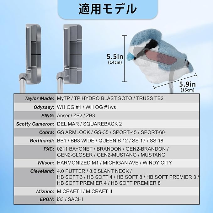 【適用モデル】ピンタイプ、ブレード型、T字タイプ、L字型などのゴルフパタークラブに適用します。ハイブリッド/小マレットパターも対応できます。