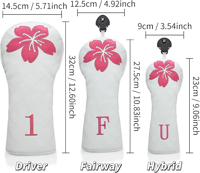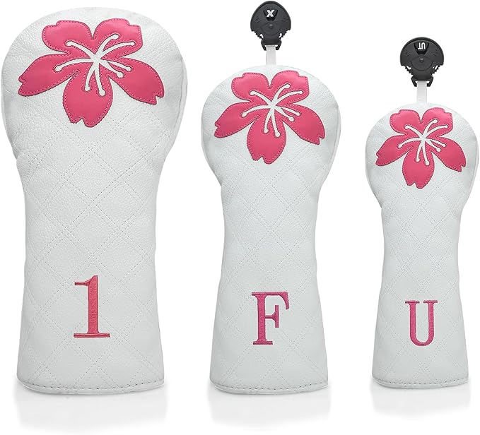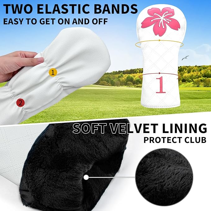 ゴルフヘッドカバー ゴルフクラブグリッド 桜デザイン ゴルフカバー PUヘッドカバーセット ドライバーフェアウェイウッドハイブリッドユーティリティウッズアイアンウェッジヘッドカバーにフィット。