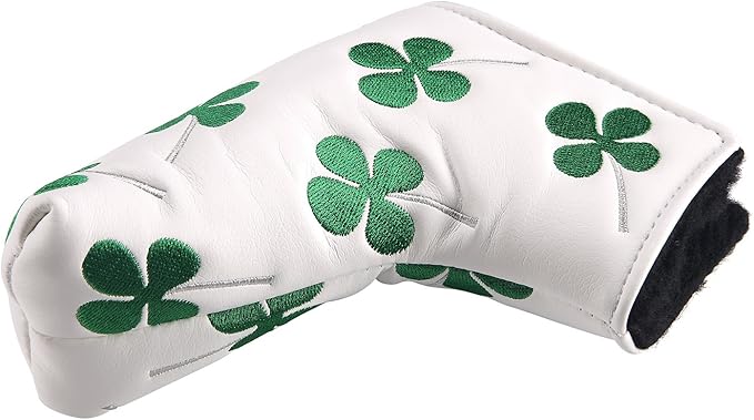 パターカバー ピンタイプ ゴルフ ヘッドカバー パターマジックテープ クローバー 大きいサイズ対応 ホワイト/ ブラック 単品1点 四つ葉クローバー PUレザー ブレードパターカバー