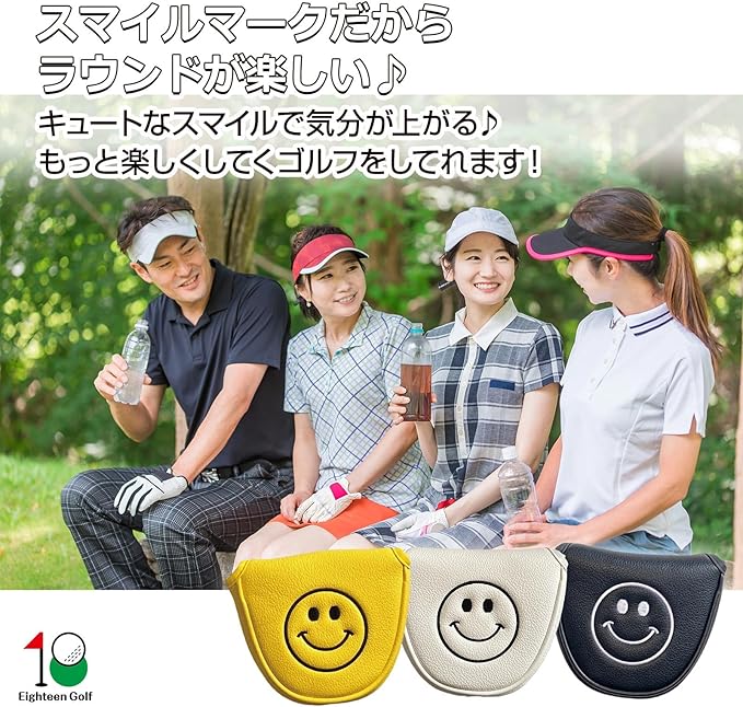 ゴルフ ヘッドカバー クラブ カバー ドライバー Eighteen Golf 440cc 460cc ウッド ユーティリティ UT カバー パター カバー 防水 おしゃれ スマイル模様