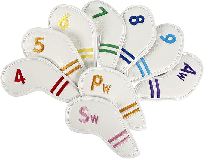 ゴルフヘッドカバー アイアンカバー 番手付 9点セット 9色ライン 4~9 Pw Aw Sw