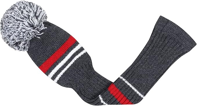 灰色の赤、白と警戒色のニットゴルフヘッドカバーセット、ドライバー、フェアウェイウッドとハイブリッドUT