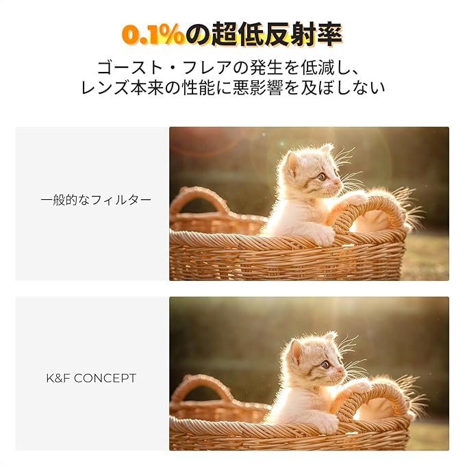 【超低反射】保護フィルターの反射率は 0.1% に制御され、レンズの反射やハロー現象を効果的に軽減し、画像をより鮮明にし、コントラストを高めます。