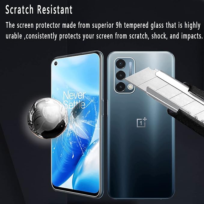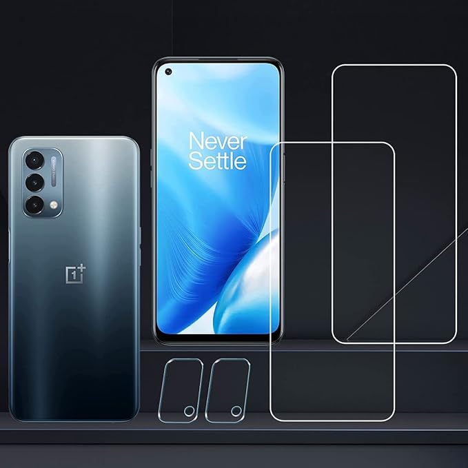 【2+2ピース】OnePlus Nord N200 5G用【スクリーンプロテクター2枚とカメラレンズプロテクター2枚】強化ガラスフィルム 厚さ0.3mm 硬度9H HDクリア 気泡防止 多くのケースに対応 傷防止 飛散防止 指紋防止