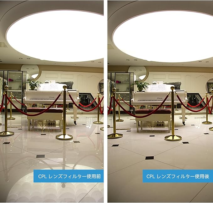 CPL フィルターは、空気中の散乱光、金属や水の反射などの不要な反射を除去し、平行光のみを通過させて色の彩度を高め、深みのある豊かな風景画像を作成します。