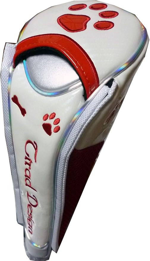 ゴルフ ヘッドカバー フェアウェイ用 肉球 マグネット式 (白/レッド, フェアウェイ用)