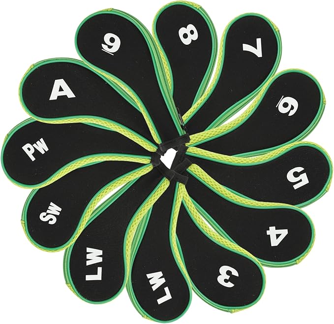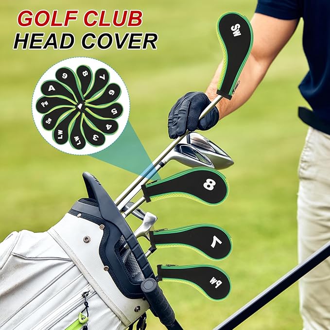 PATIKIL ゴルフクラブヘッドカバー 12個セット 番号付きアイアンカバー ネオプレンドライバーカバー ゴルフ愛好者への贈り物 メンズ レディース用 黒/緑