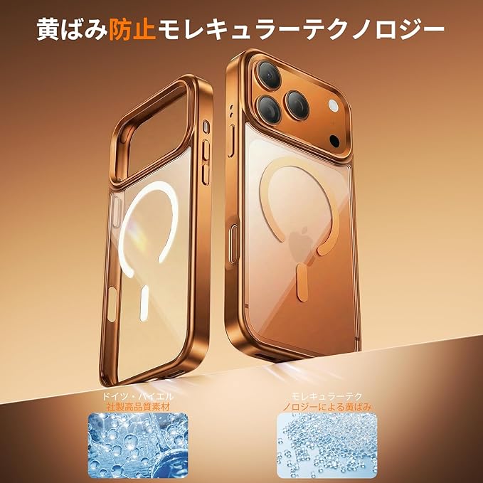 ✨ 長期間黄変しないクリスタルクリアデザイン 独自の黄変防止分子技術と高品質素材を採用。 UV 照射下でも長期間クリアな透明感を保ち、黄変・曇りが発生しません。 iphone 17 Pro Max ケース クリアとして、iPhone 17 Pro Max 本来のデザインを引き立てながら、傷や汚れから守ります。 スリムでスタイリッシュな薄型設計でポケットにスムーズに収まり、スタイルと保護力を 1 つにまとめた理想的なケースです。