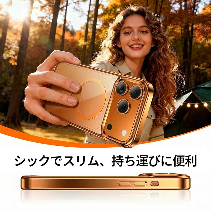 【4倍米軍MIL規格・MagSafe 対応・3 in 1】Gtsoho 軽量 薄型 iPhone 17 Pro Max ケース クリア スクリーンプロテクター & カメラレンズプロテクター付属 黄変防止 【金属感・四辺高級メッキ加工】【四角防摔設計】マグネット機能でワイヤレス 耐衝撃 いphone17pro max ケース (クリアオレンジ)