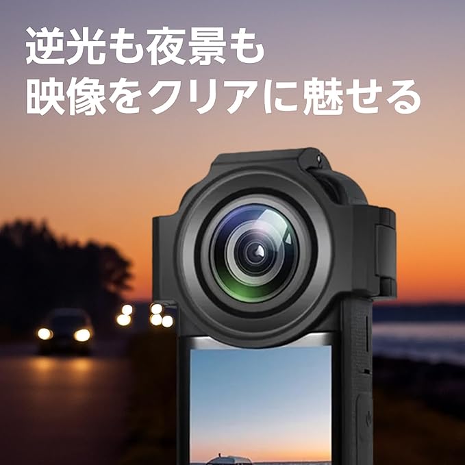透明ガラスを使い、映像の歪みや色味の劣化を抑え、360度の美しい景色をそのまま再現できるレンズカバーです。防滴仕様で、突然の雨や水しぶきにも強く、旅先やキャンプなどのアウトドア撮影や水辺のアクションシーンにもお使いいただくことができます。
