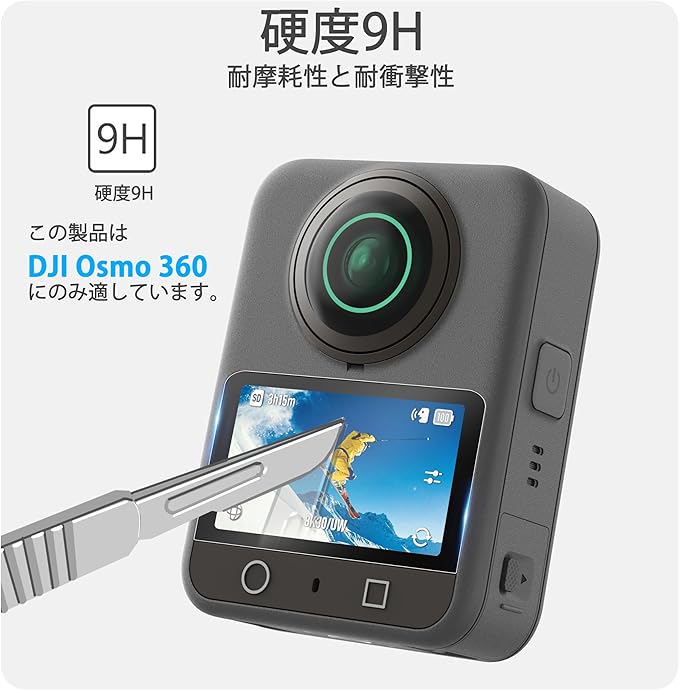 【DJI OSMO 360用光学強化ガラススクリーンプロテクター】指紋防止および反射防止コーティングが施された光学強化ガラススクリーンプロテクター 2 枚パックで、dji osmo 360タッチスクリーンを擦り傷や引っかき傷から保護します。 0.28mm厚の高品質強化ガラス。非常に頑丈: 最大 9H の耐傷性。スクリーン プロテクターは osmo 360カメラ ディスプレイにぴったりフィットし、気泡がなく、すぐに使用できます。