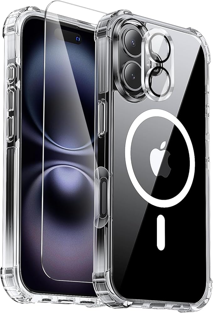適用 iPhone 17 ケース [MagSafe 対応] [スクリーン・レンズプロテクター各 1 枚付き] [軍用級落下試験合格] ヘビーデューティー磁気式フォンケース for iPhone 17 6.3 インチ、クリア-A