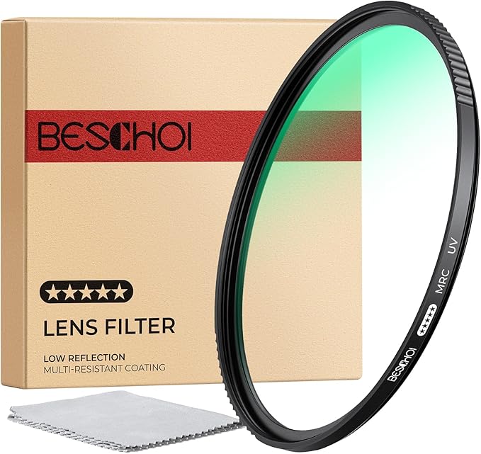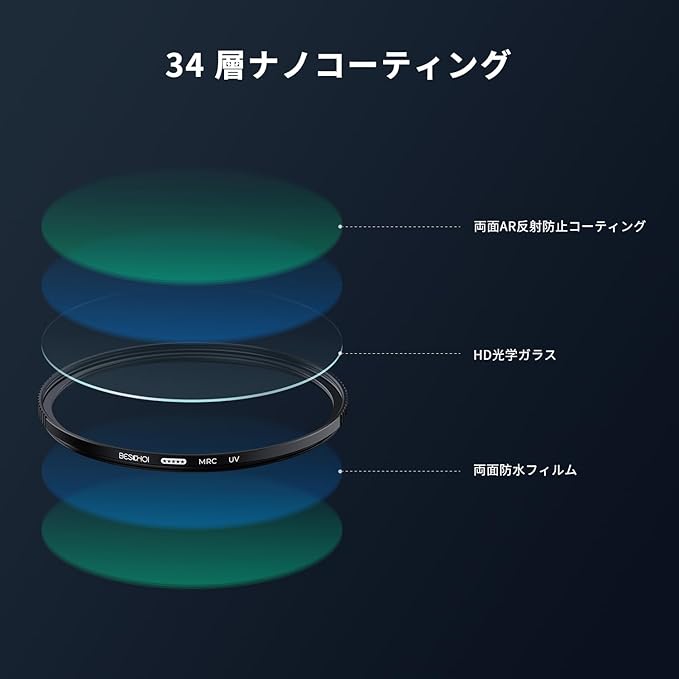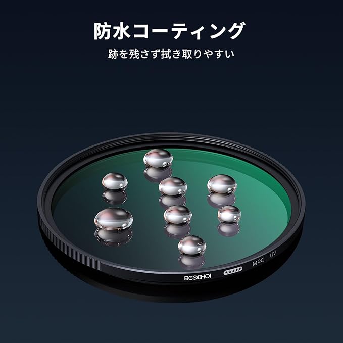 Beschoi UVフィルター 55mm 保護フィルター カメラフィルター プロテクターフィルター 34層ナノコーティング 紫外線カット 日本製AGC光学ガラス 防水防汚 薄枠 撥水・防汚コーティング (五星シリーズ)