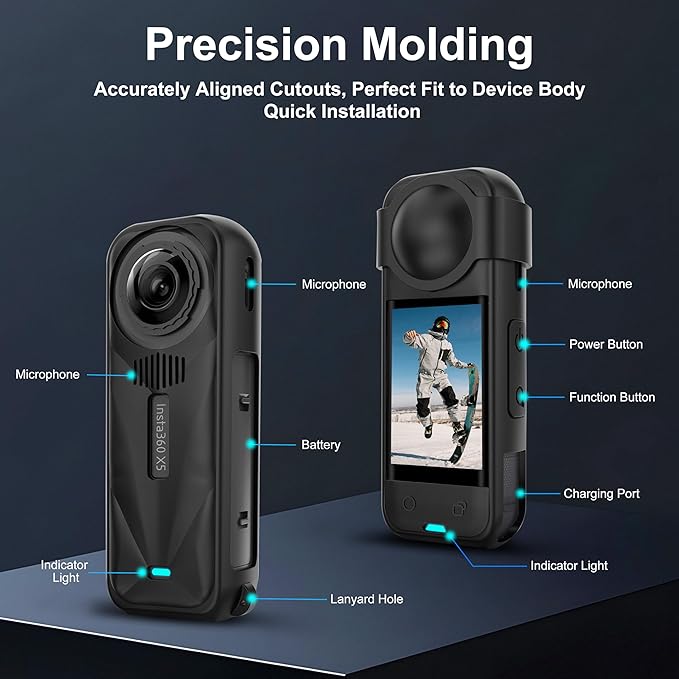 【INSTA 360 X5用に設計】このコンボは INSTA 360 X5カメラにぴったりフィットし、より優れた保護を提供します。 *特記事項: このシリコン保護セットは、INSTA 360 X5にのみ適しています。 INSTA 360 X4/X3/X2/Xとは互換性がありません! !