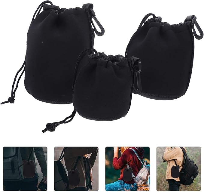 Homoyoyo カメラポーチ ソフトクッション レンズバッグ 巾着 デジタルカメラケース ミニ 小型 レンズポーチ パッド入り マルチ レンズ収納 旅行 レンズプロテクター 3個セット ブラック