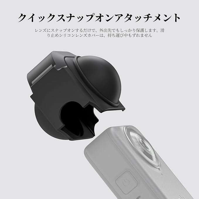 【クイックスナップオンアタッチメント】レンズにスナップオンするだけで、外出先でもしっかりと保護します。滑り止めシリコンレンズカバーは、持ち運び中もしっかりと固定されます。