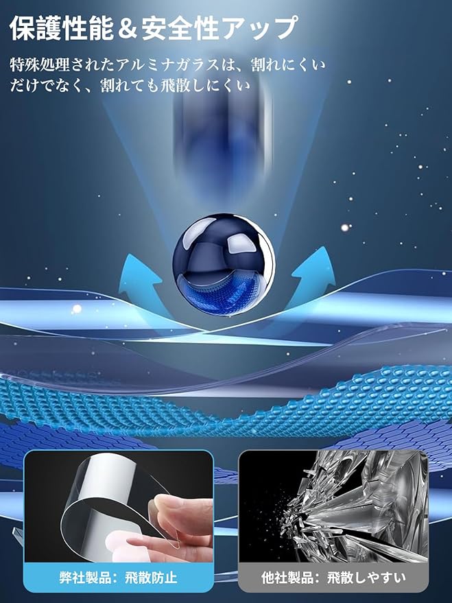 【PC素材製レンズガード&9H旭硝子製保護フィルム】一番の保護性能を提供するために、この液晶画面保護フィルムは業界一番の9H硬度の旭硝子素材を採用しております。日常利用中で万が一カメラ落下するなどになってしまえば、保護フィルム貼り付けられては最大限に保護できます。フィルムが割れてもガラス破片が飛散することを防げます。