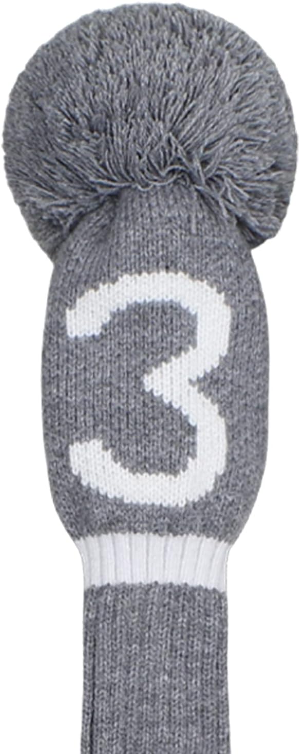 Scott Edward 1/3/4PCS グレーニットゴルフクラブカバー ドライバーウッド (460cc)・フェアウェイウッド・ハイブリッド/UT 用 ホワイト大数字(Number 3)