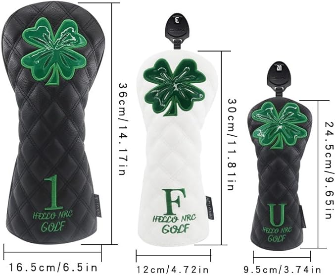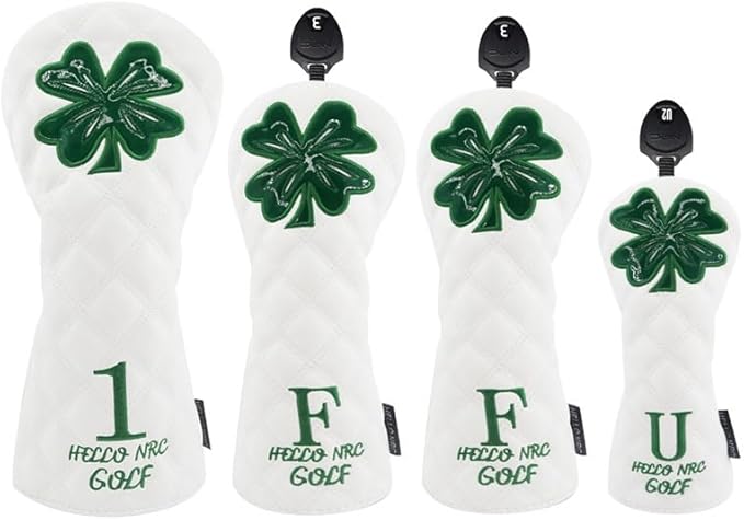 ゴルフヘッドカバー ドライバー DR 用 ウッド FW 用 ユーティリティ UT用カバー 番変換ダグ付防水仕様 クローバー 白 ラッキー