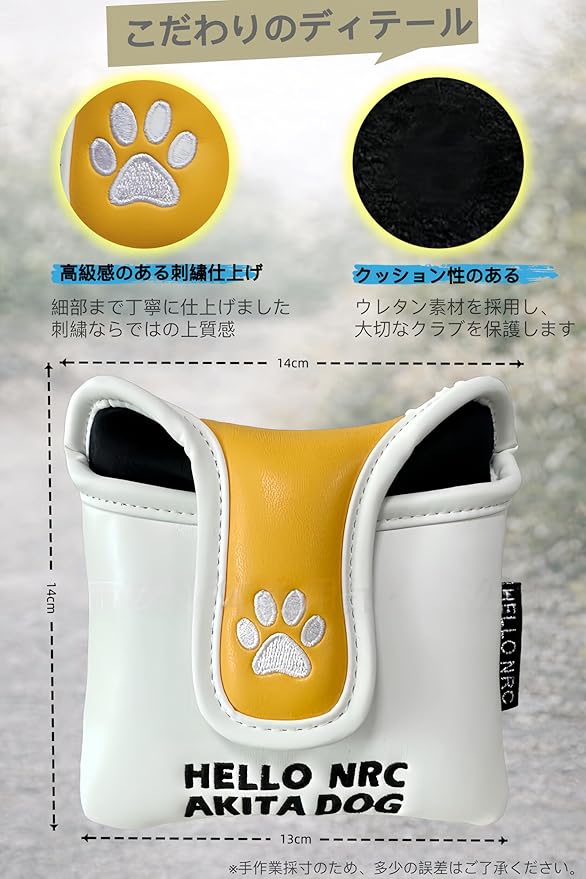 ラウンドの気分が上がる、招き猫&秋田犬モチーフのパターカバー。 見た目のかわいさだけでなく、雨の日のプレーや持ち運びのことまで考えて作りました。 開閉はマグネット式なので、クラブの出し入れが手早くできてストレスなし。 表面は撥水加工で、水滴や汚れもサッと拭くだけ。 内側はやわらかな素材で、ヘッドをやさしく包み込みます。 刺繍で仕上げた肉球やロゴが、さりげないこだわりポイント。 いつものバッグに入れておくだけで、ちょっと楽しくなるアイテムです。