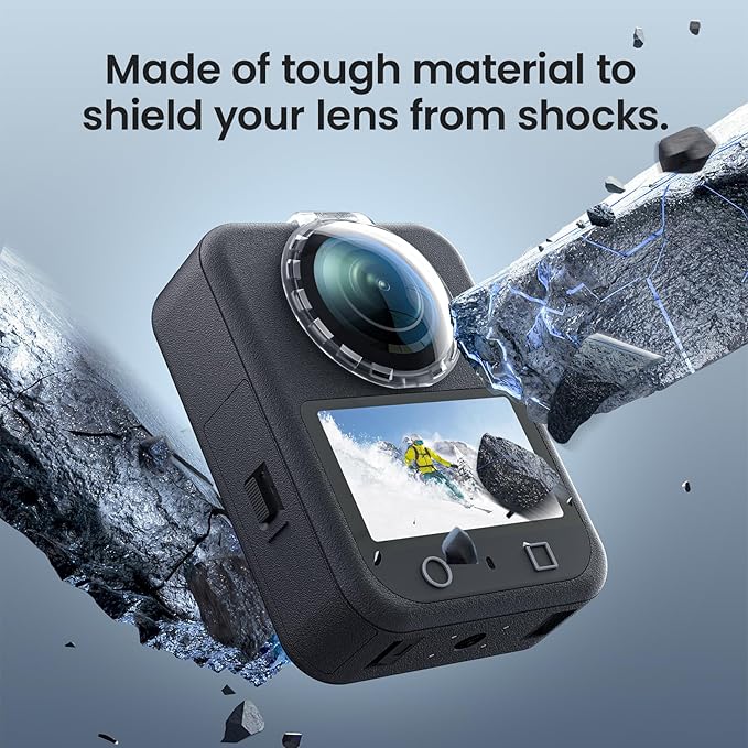 【衝撃吸収・耐落下性】DJI OSMO 360用カメラレンズプロテクターは多層硬化処理が施されており、傷や摩耗に強く、安心してご使用いただけます。シリコンレンズキャップは保護レンズを装着したままでも装着可能です。