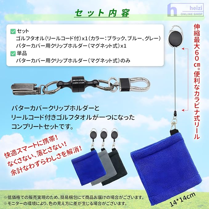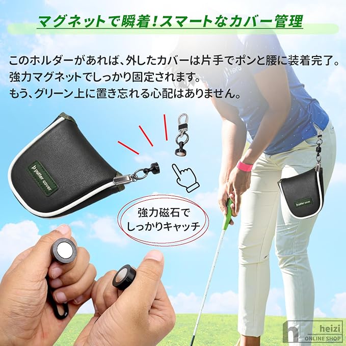 heizi ゴルフタオル & パターカバーホルダー 【パット快適化】 マグネット式 パターカバーキャッチャー 厚手対応 紛失防止 コンペ 景品