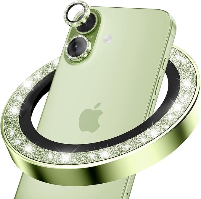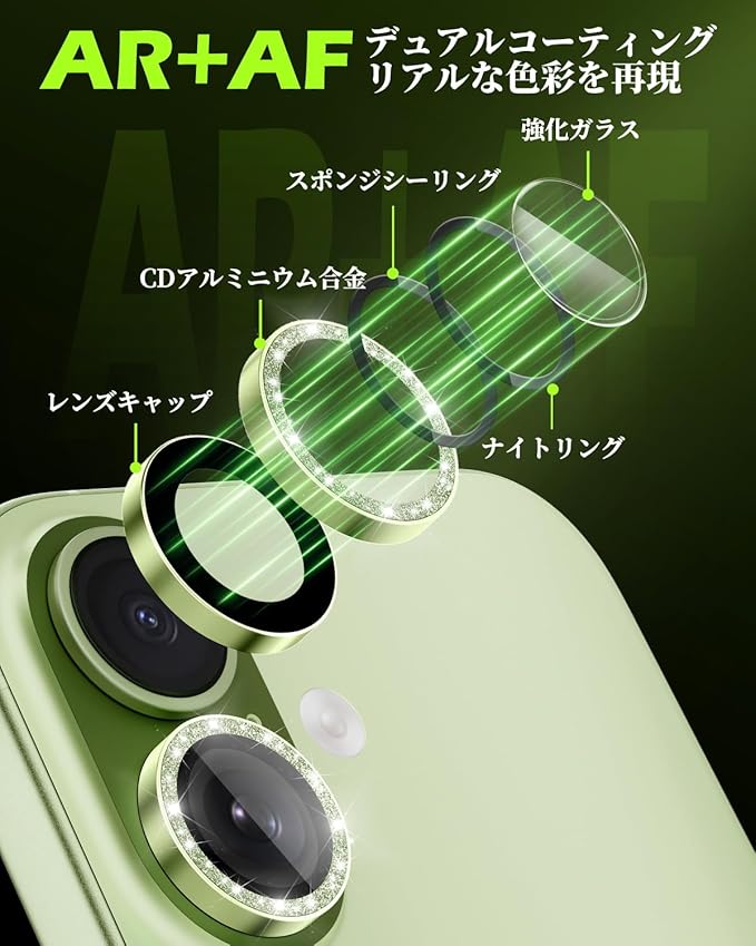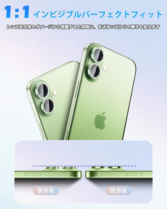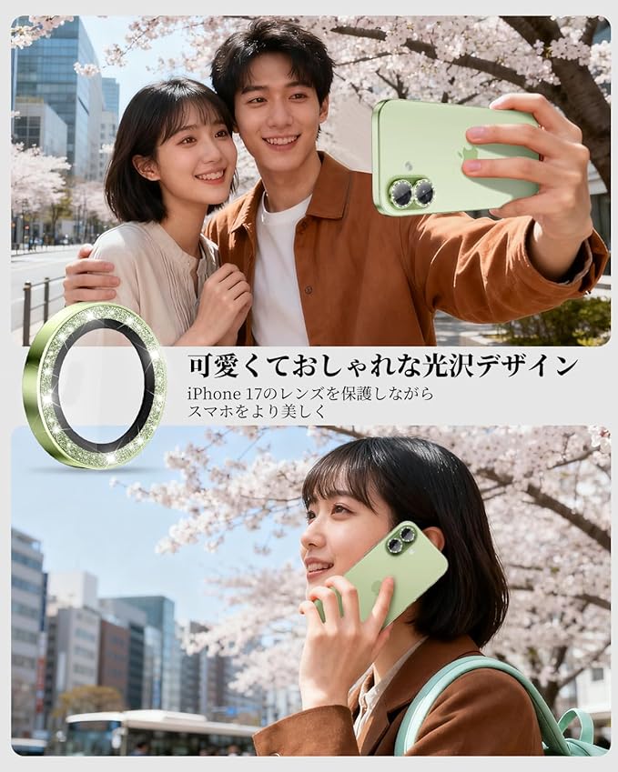 CloudValley 対応 iphone 17 レンズカバー セージ フラッシュ可愛い オリジナルモデルとの色の違いはありません カメラ保護 9H強化ガラス 全面保護 簡単にずれずに装着可能 1:1 インビジブルパーフェクトフィット 9H強化ガラス 高透過率 傷防止 (きらめき-グリーン)