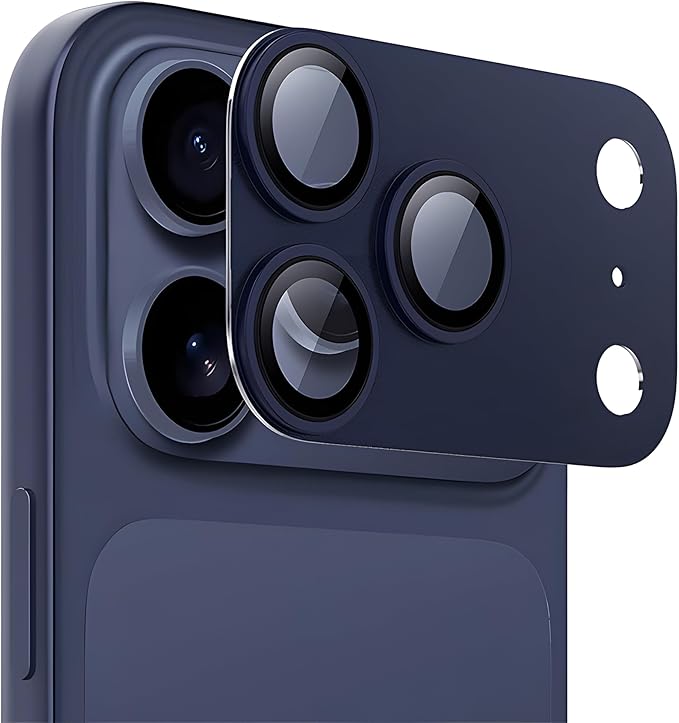 JUNOVA for iPhone 17 Pro カメラレンズプロテクター 強化ガラス アルミ合金フレーム 高透過率 ARコート 傷防止 耐衝撃 ケース対応 (1枚, ネイビー)