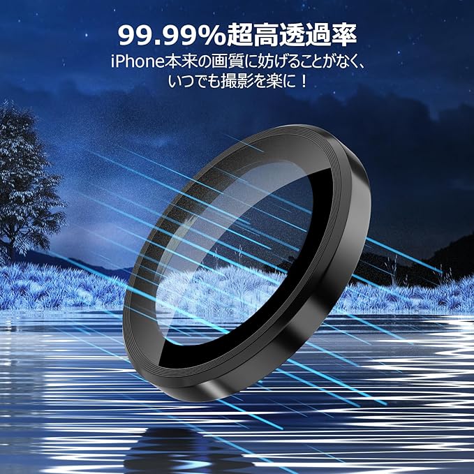 【超高透過率・0.25mm極薄型】本製品は露出オーバー防止のために、カメラ覆う部分に黒い縁取りをした設計を採用。さらに、強化ガラスに光学コーディング(AR)技術を採用し、光の透過率は99%に達し、装着していない状態のように、繊細な写真の撮影が可能です。わずか0.25mmの極薄型で、違和感もなく本体の設計も損なわないです。レンズを保護しながら、i-P-hone本来の高画質を楽しむことができます。