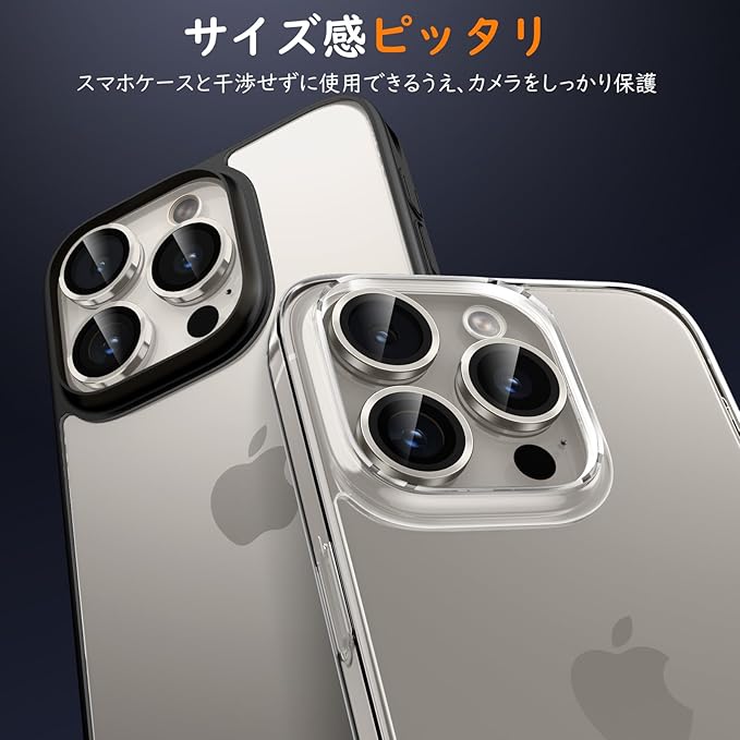 【スマホケースと干渉せず・0.2mm極薄型】本体に沿って精密に設計され、カメラレンズにピッタリとフィットし、引っかかり感がなく、ほとんどのケースと干渉しません。フィルム貼付後に、カメラレンズよりわずか0.2mm高くなっている。さらに、スマホと同じの配色で、いPhone本来の崇高な美しさと高級感を損なわなく、いつものスマホに上品さをプラス。
