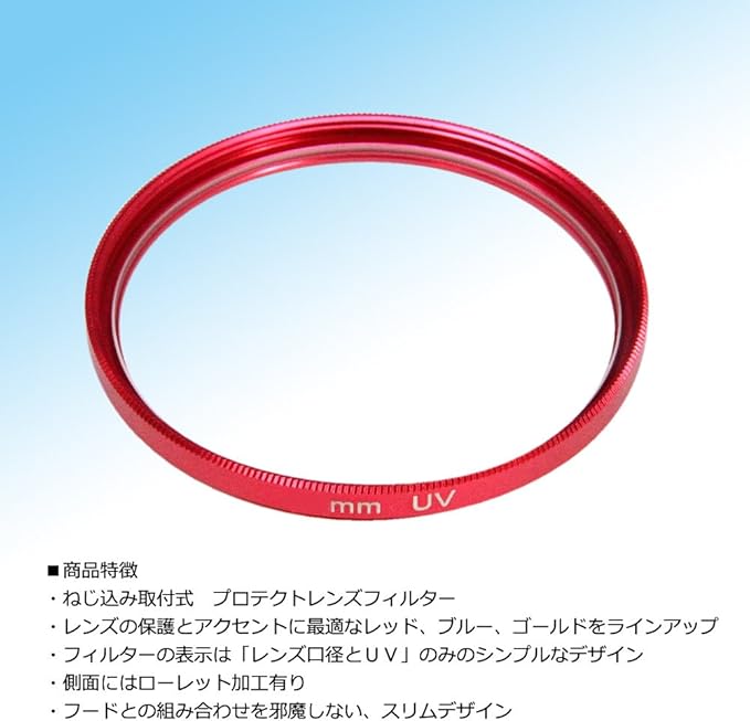F-Foto 58mm 赤枠 レンズフィルター (スリムタイプ レッド 各社対応 薄型 UV保護フィルター) F58-RED