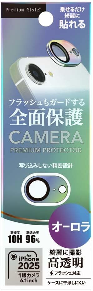 iPhone16e 用 カメラフルプロテクター カメラレンズ レンズ保護 レンズカバー オーロラ PG-25KCLG14AR Premium Style