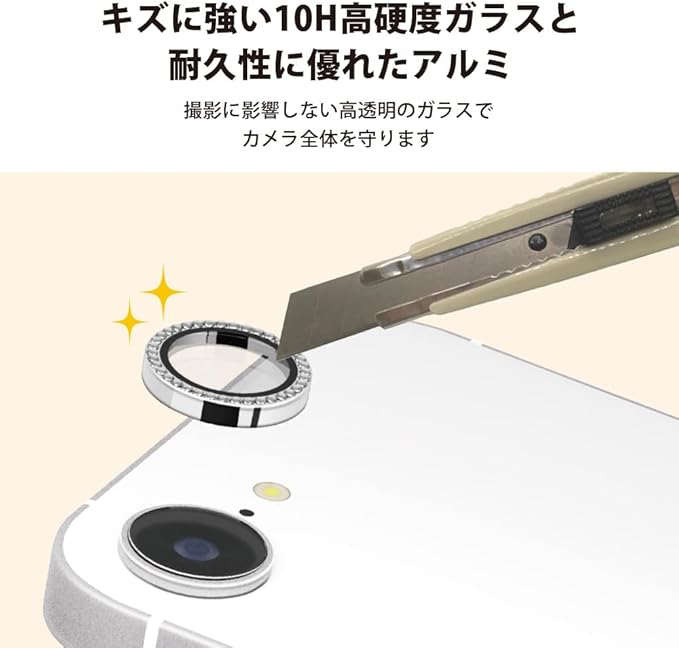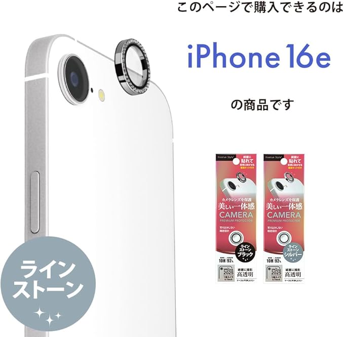 華やかで可愛いラインストーンで装飾されたiPhone16e 用 カメラレンズプロテクター