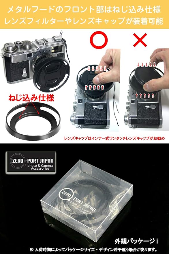 ゼロポートジャパンのメタルフードは、リア部だけでなくフロント部にねじ切りが施工されているので前面部にもレンズフィルターが装着できます。