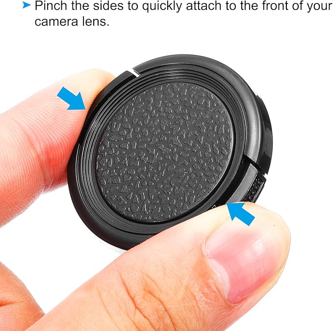 利点:強化プラスチック製で、耐久性があり軽量です。サイドピンチデザインで簡単に取り付けと取り外しができます。このレンズキャップはフィルターやレンズフードと同時に使用できます。